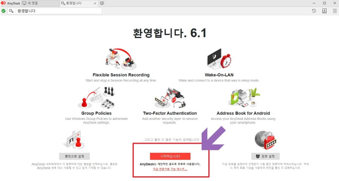 하지만 애니데스크의 경우에는 라이선스 관련 안내 창을 뜨는 경우가 거의 없는 데다가 무료로 사용이 가능하면서도 사용법이 아주 간편합니다.